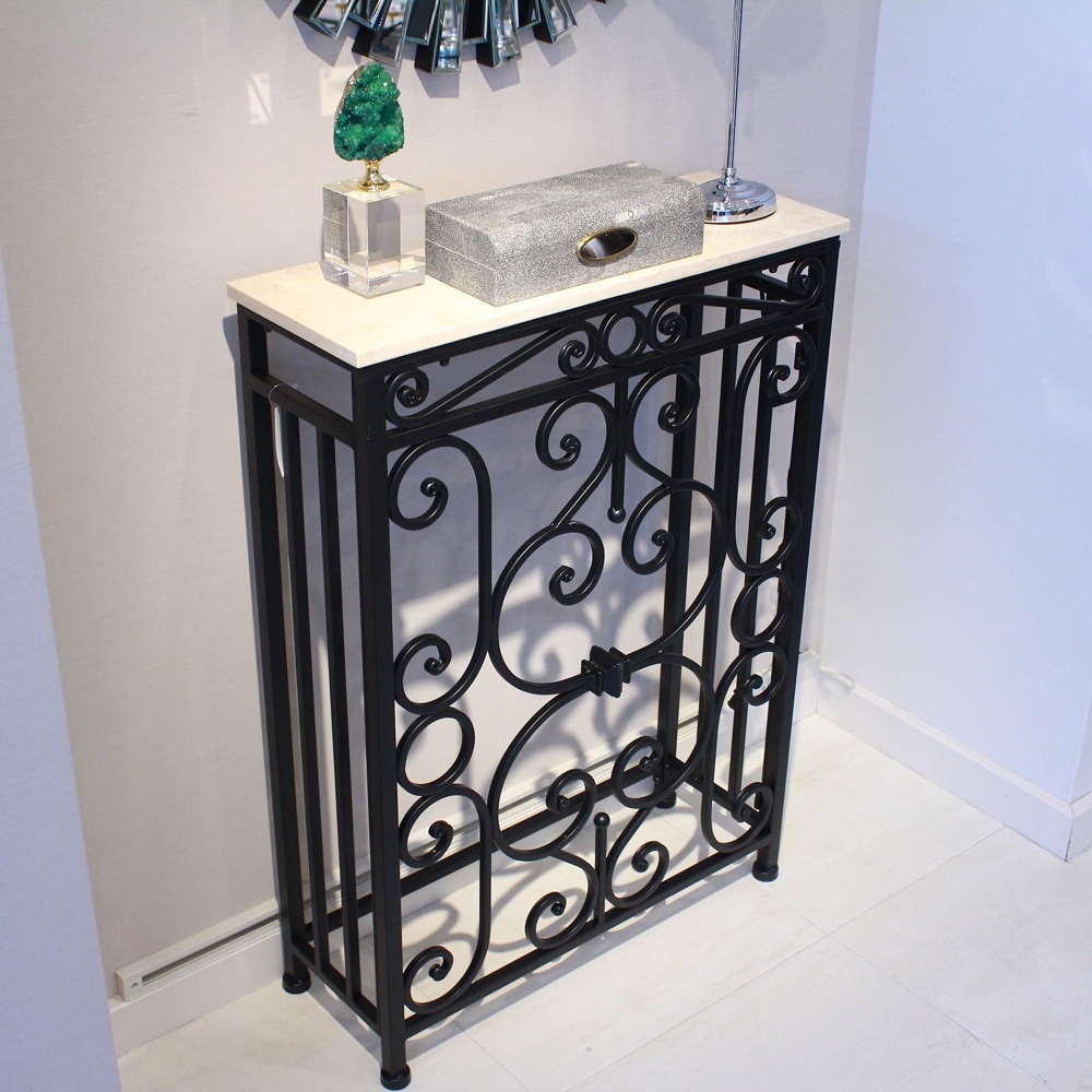 「コンソールテーブル」 「大理石天板」 「アイアン家具」 「ヨーロピアンスタイル」 「インテリアディスプレイ」 「エレガント」 「クラシック家具」 「アンティーク調」