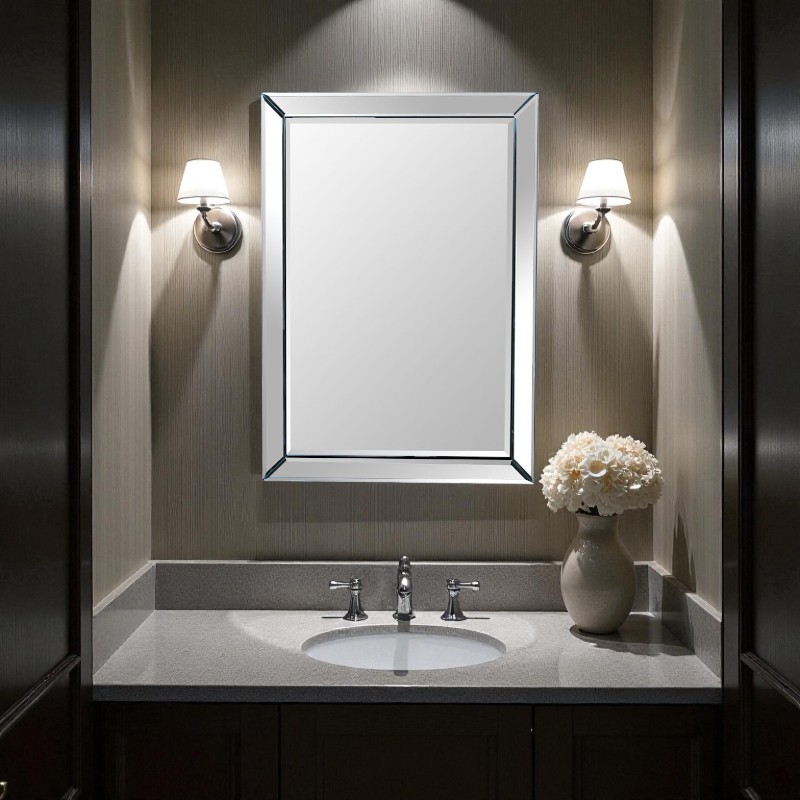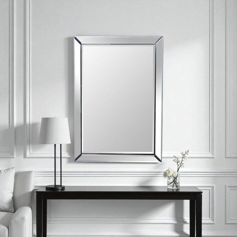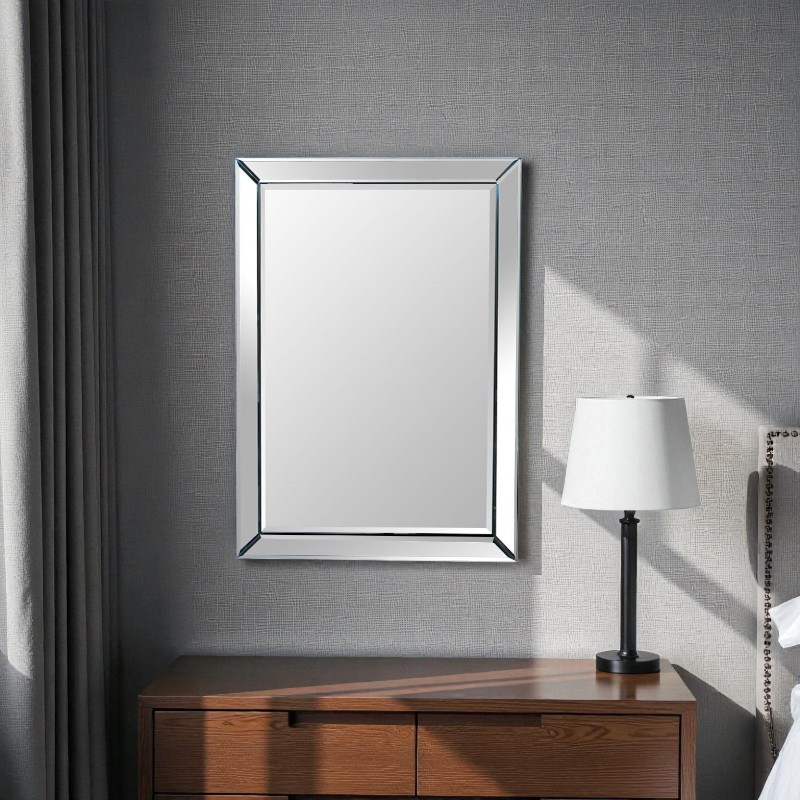 ミラーだけが持つクリーンな透明感と、面取りガラスのシャープな陰影が空間の質感をワンランク引き上げます。寝室・リビング・玄関・パウダールームなど、あらゆる空間に溶け込む万能デザイン。