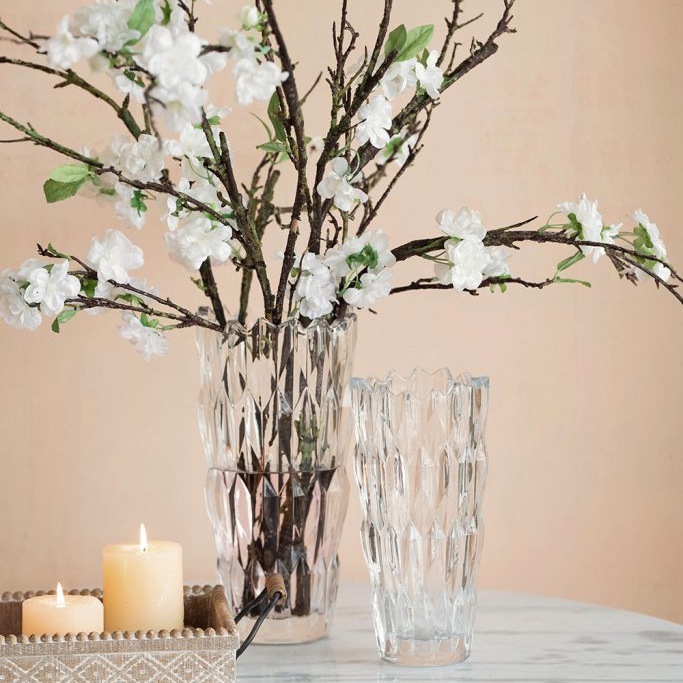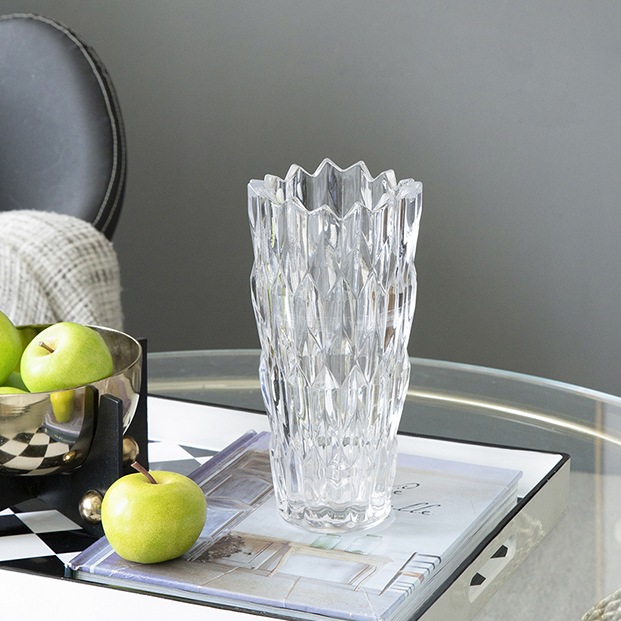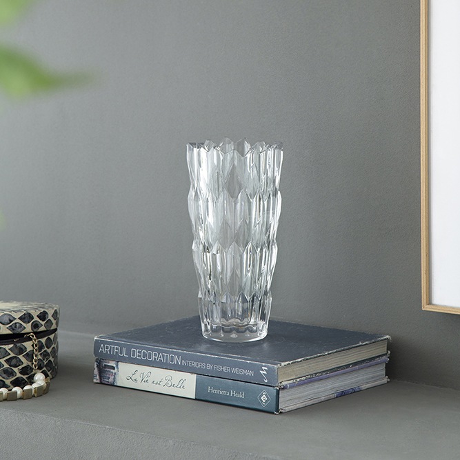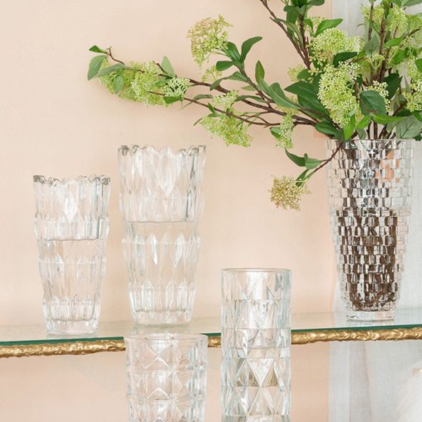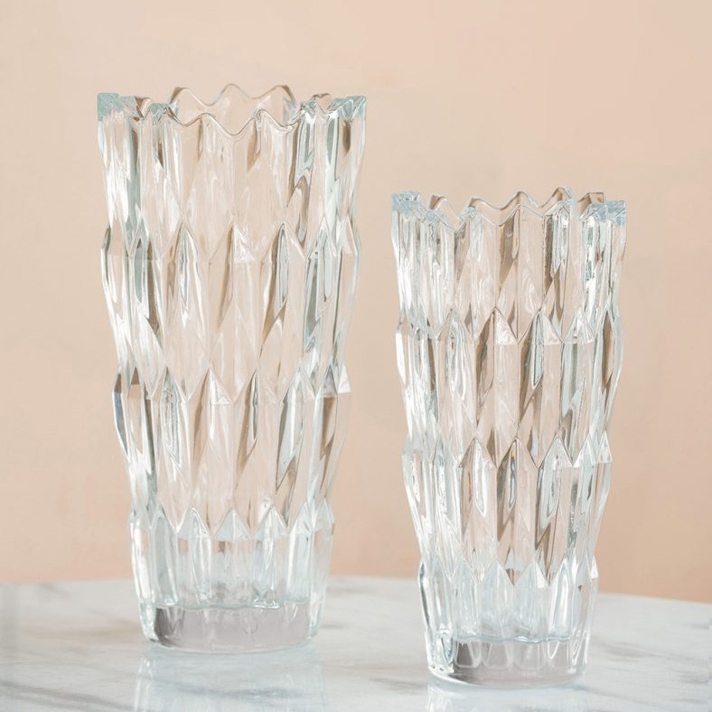 洗練されたファセットガラスの花瓶は、どんなインテリアにも美しいアクセントを加えます。