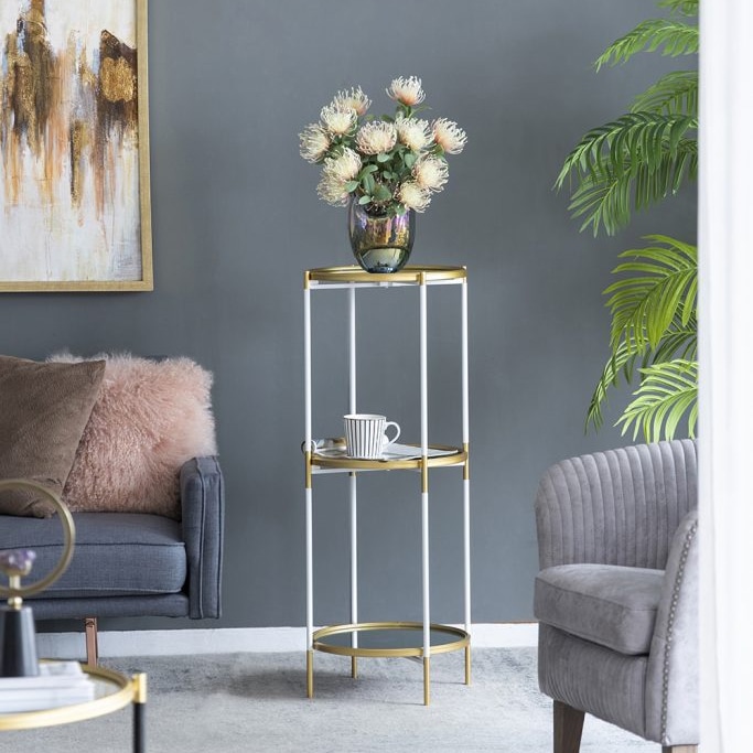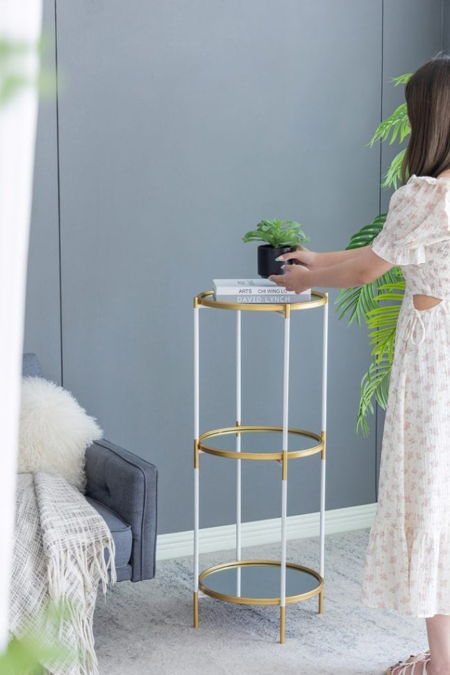 輝くミラー天板が、空間に明るさをもたらし、どんなスタイルのお部屋にも美しいアクセントを加えてくれます。