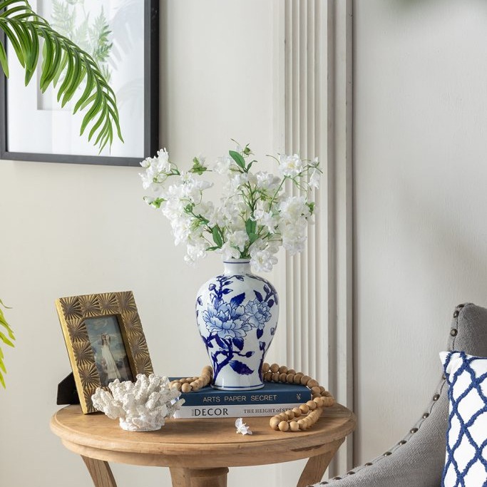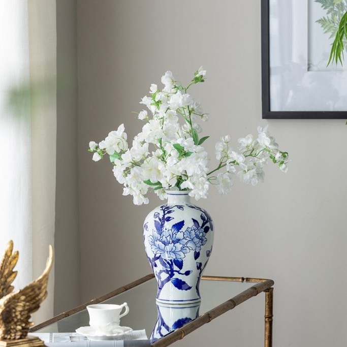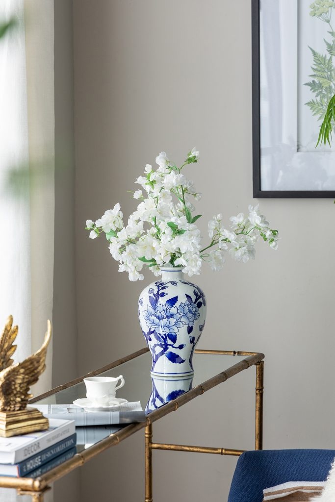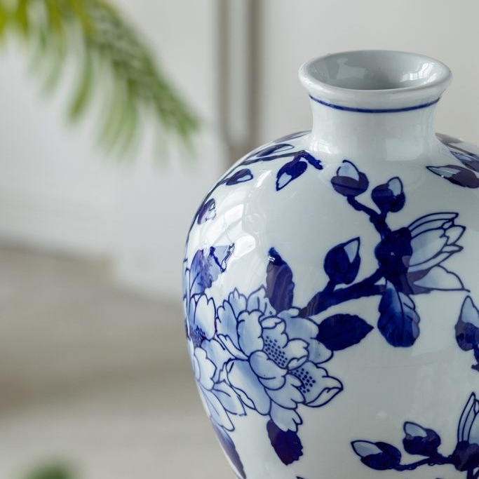 鮮やかなマグノリアの花が描かれたこの花瓶は、そのエレガントなスタイルで、リビング、ダイニング、さらにはオフィス空間においても存在感を放ちます。