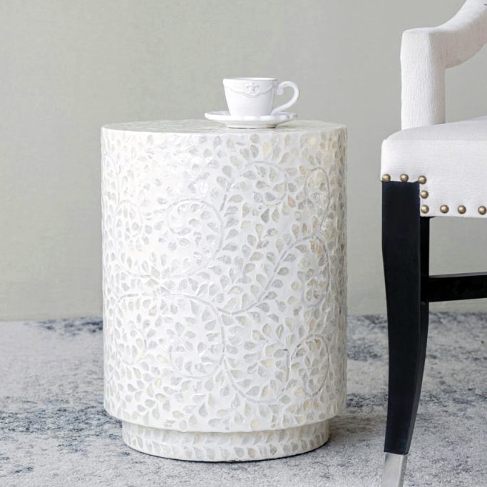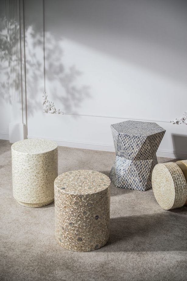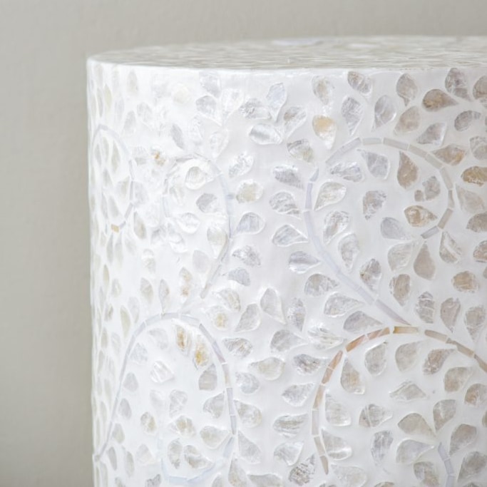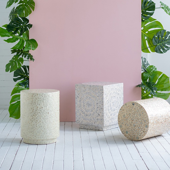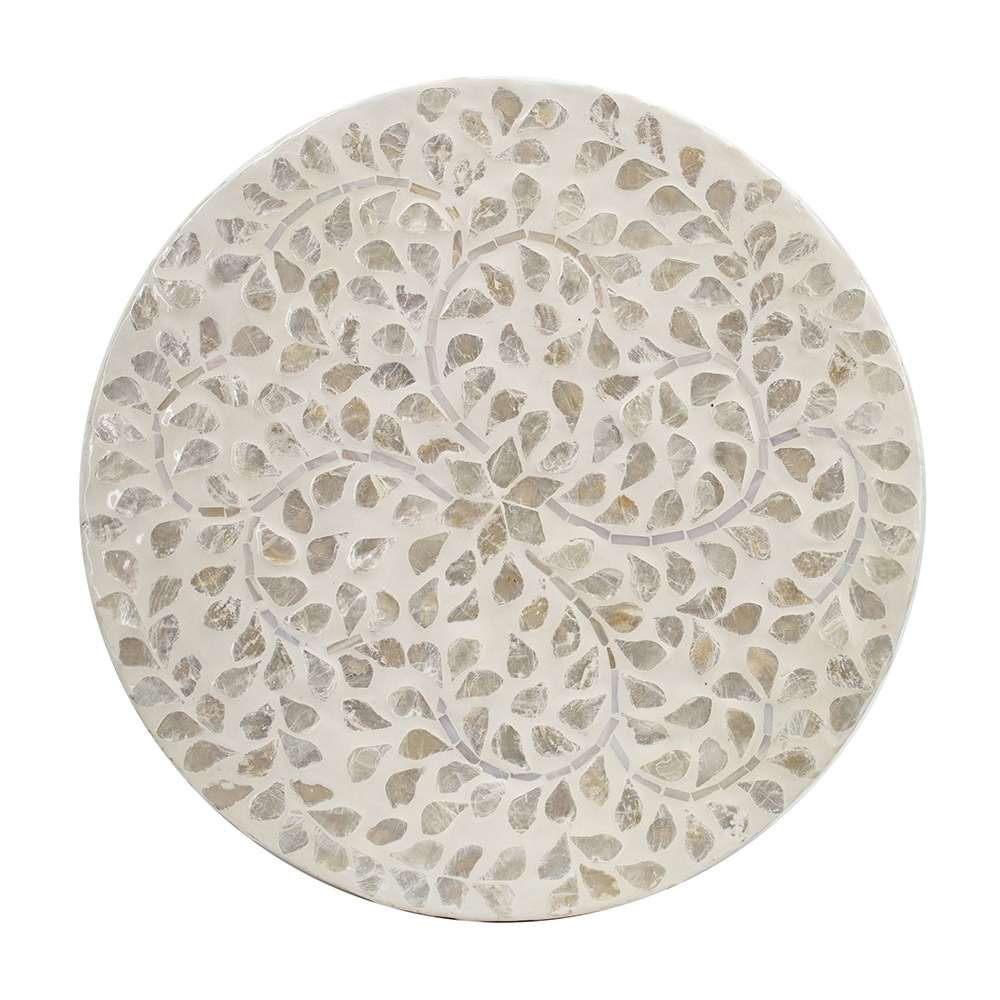 天然シェルのひとつひとつが織りなす華やかな模様は、まるでアートピースのよう。