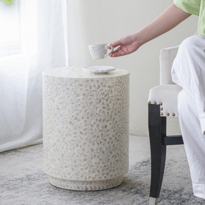 スツールとしてはもちろん、ソファ横のサイドテーブルとしても活躍する多機能デザインです。