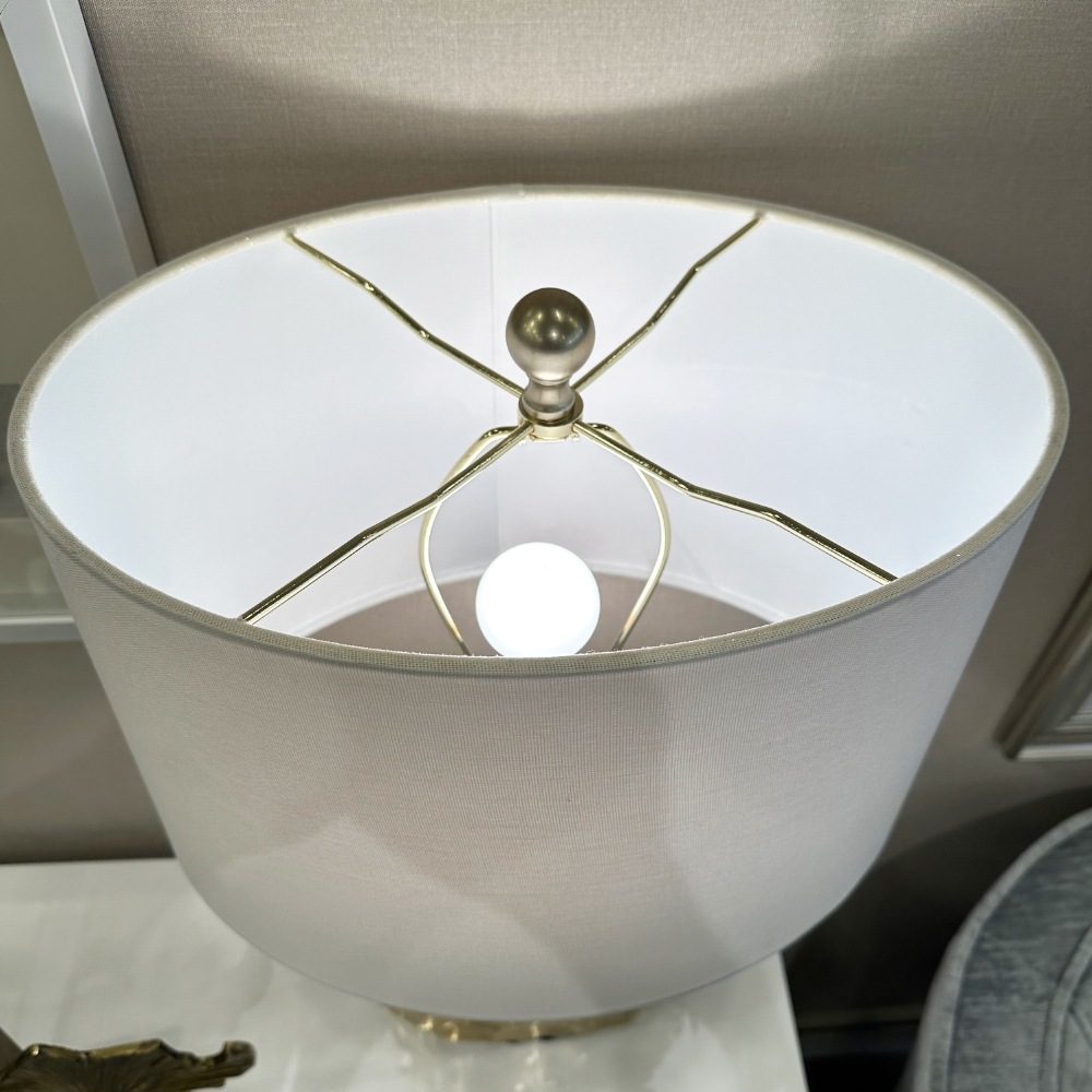 やわらかな印象のホワイトファブリックシェードが光を穏やかに拡散し、空間を優しく照らします。