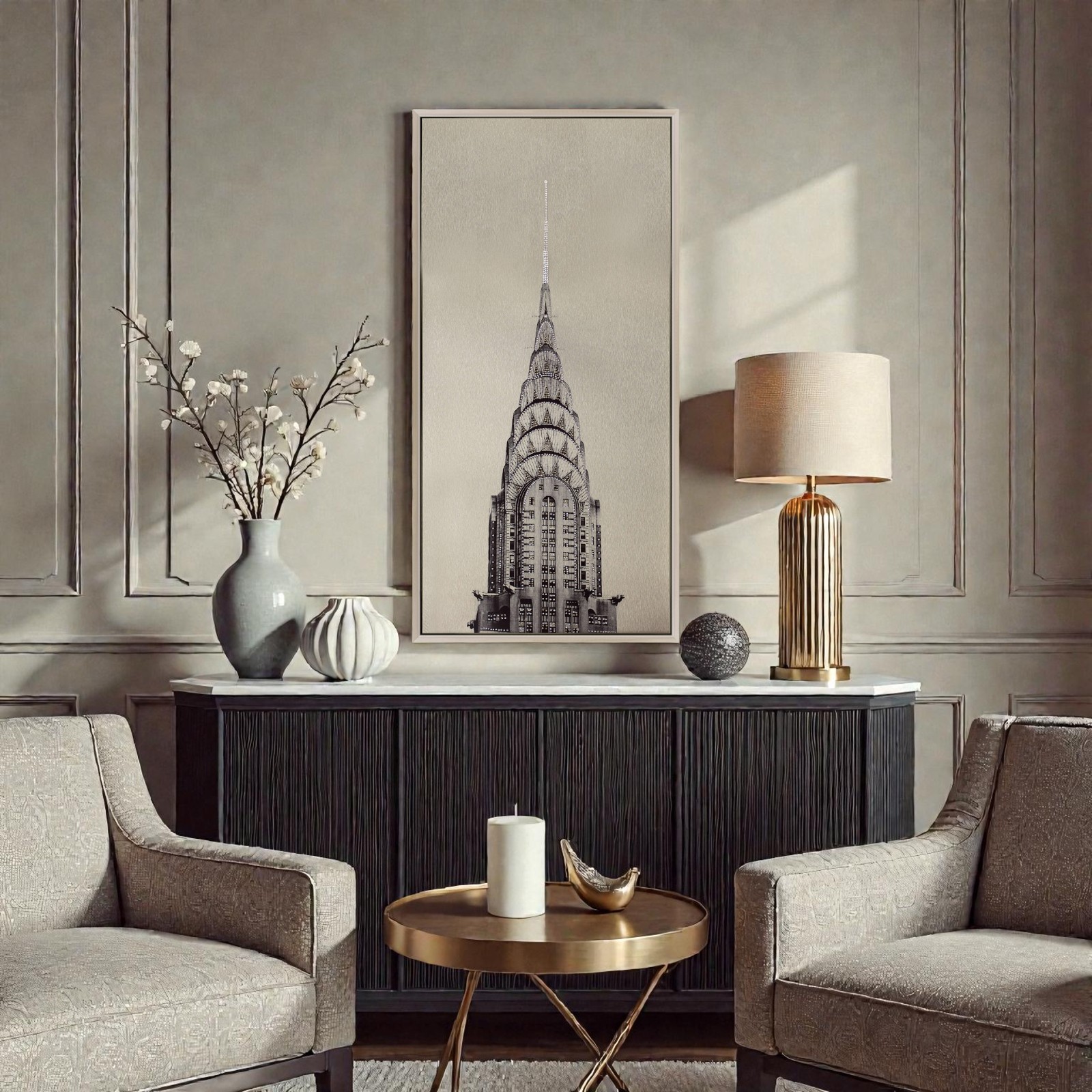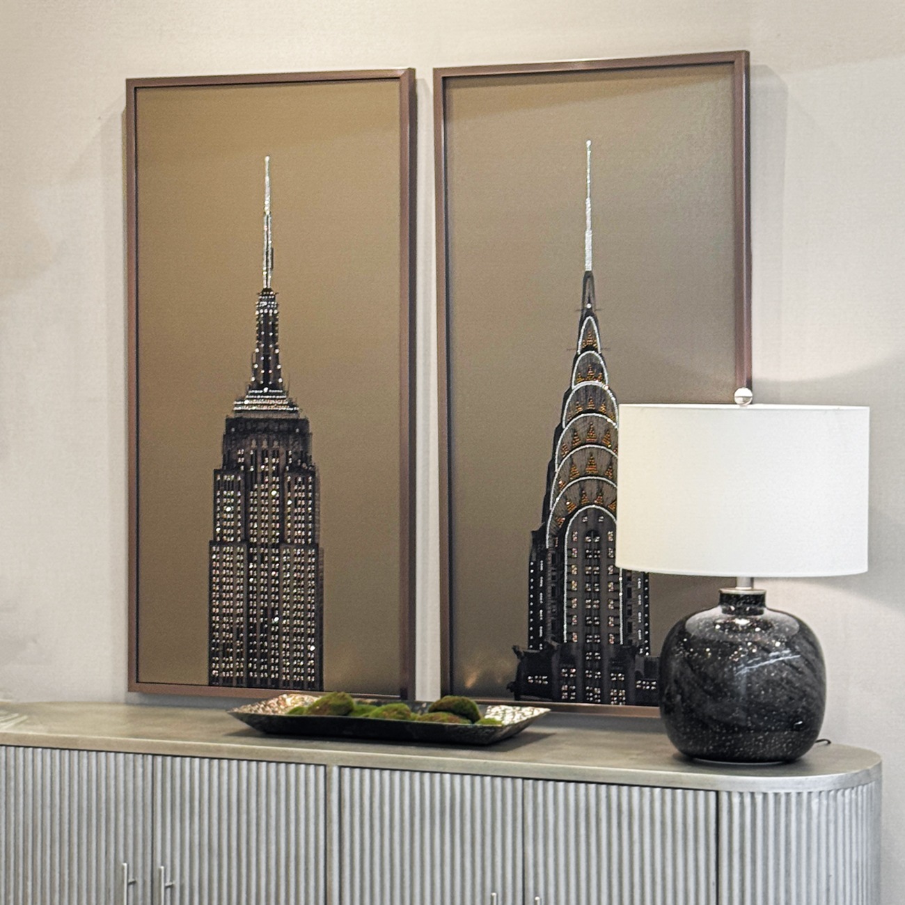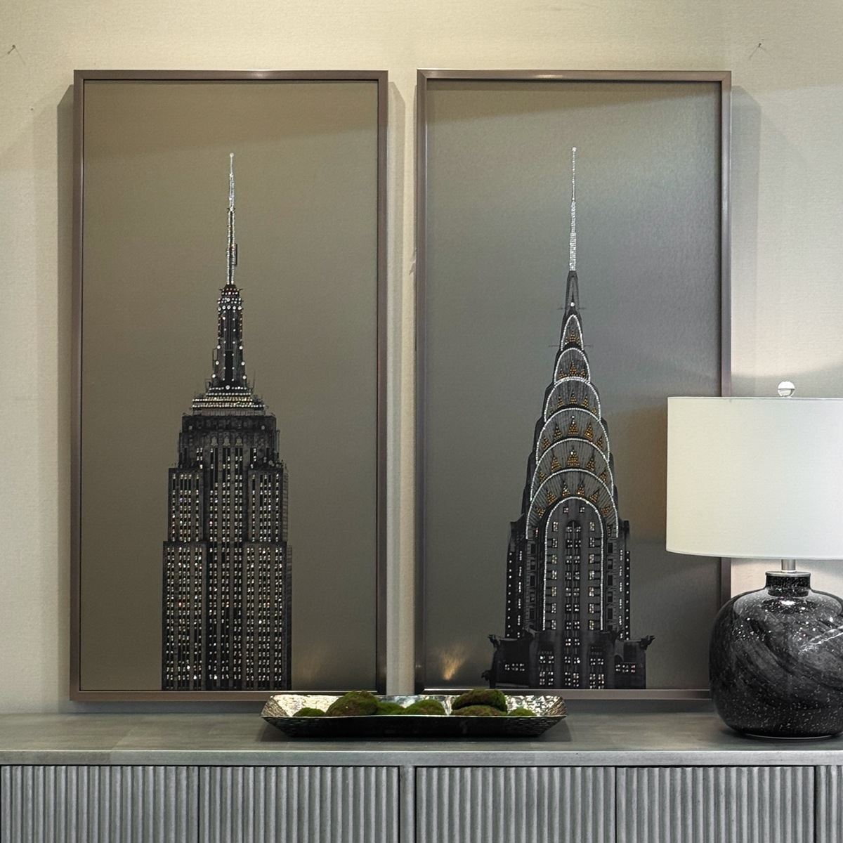 高さ122cmの縦長フォルムが印象的な、ニューヨークの名建築をモチーフにしたアートパネル。