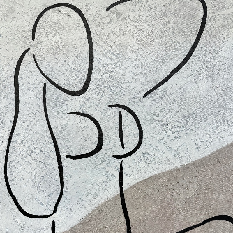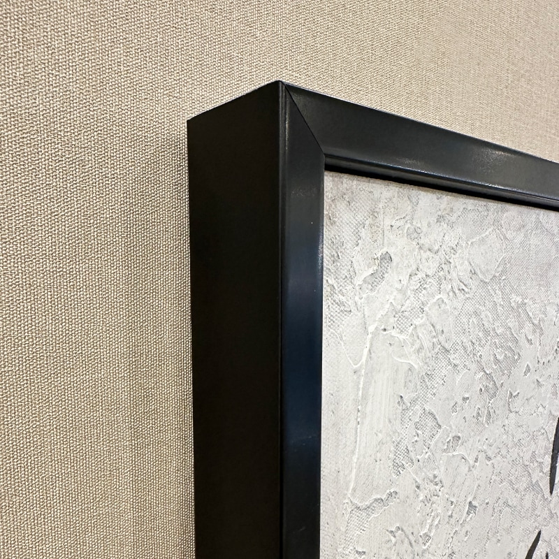 淡いグレーとベージュの落ち着いた背景に、シンプルなブラックラインが際立つデザイン。柔らかな色調が空間に馴染みやすく、モダンで洗練された雰囲気を演出します。