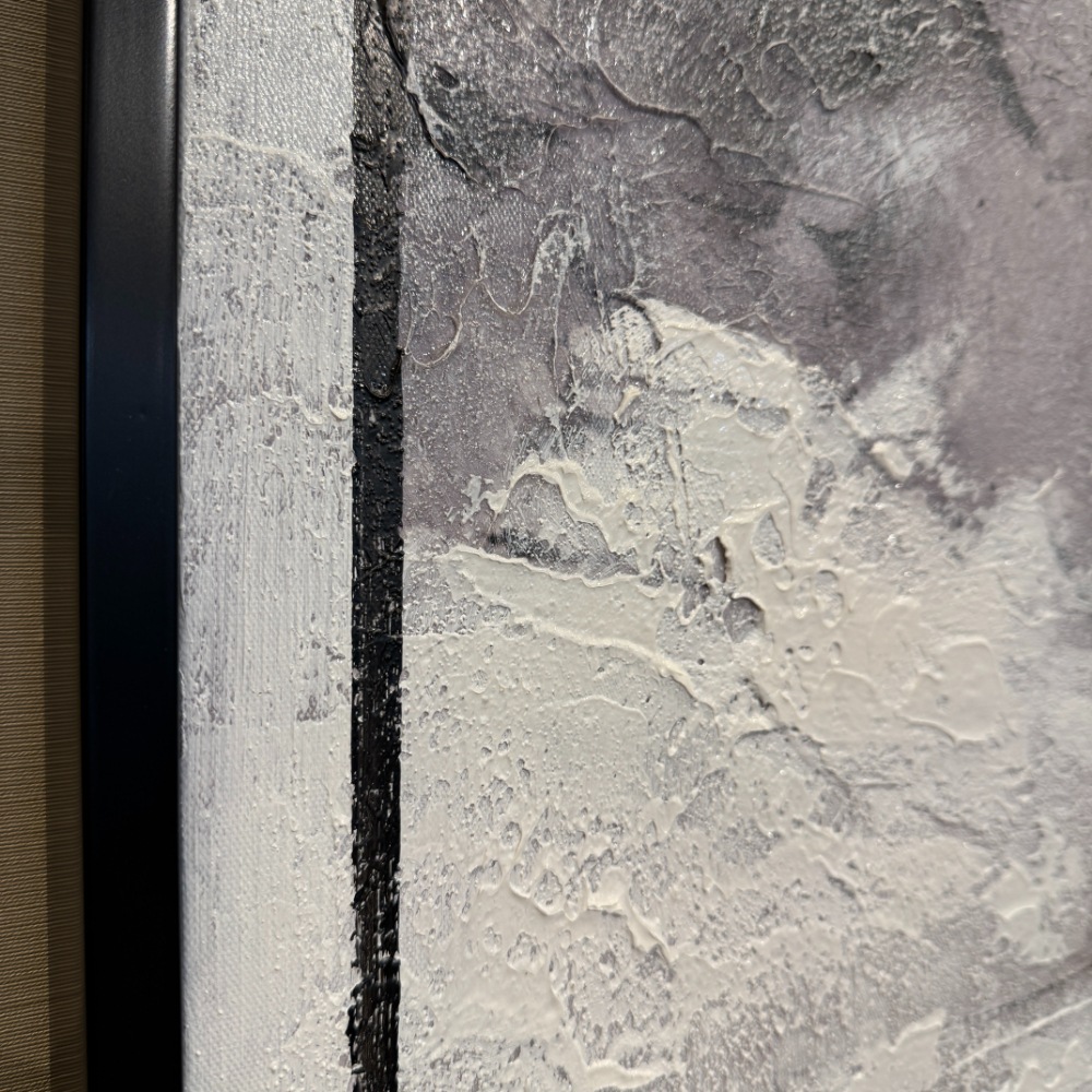 重ねられた筆タッチが生む独特の風合いと、グレーを基調としたモノトーンの色合いが調和。落ち着きの中に奥行きを感じさせる仕上がりです。