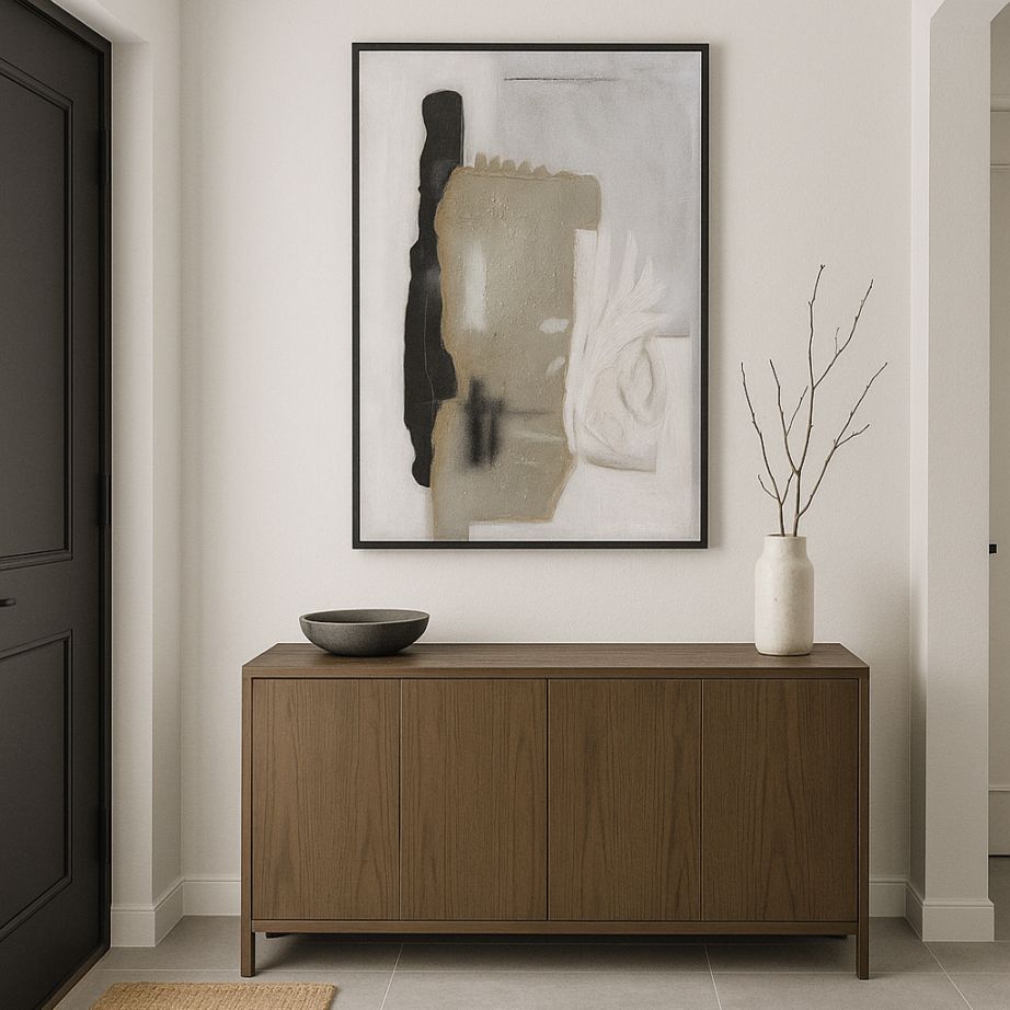 モダンな空間を彩る抽象デザインの大型インテリアパネル。存在感あるサイズで、リビングや寝室、オフィスやホテルロビーなど幅広いシーンにマッチします。