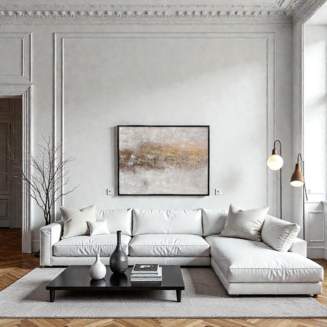 ホワイトとグレーを基調に、ブラウンやゴールドのニュアンスが溶け込み、落ち着きと上質さを演出します。