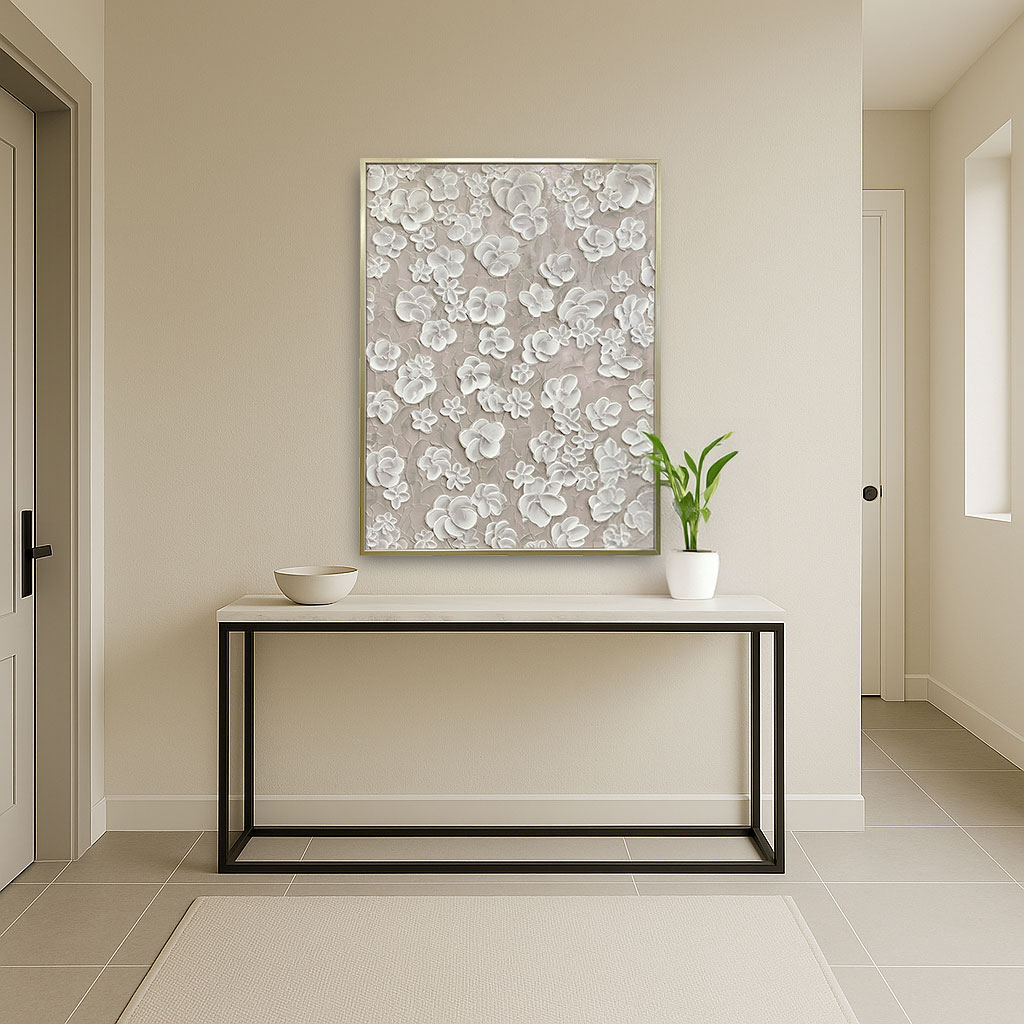 厚みのあるレリーフ調の仕上げが、まるで壁面に花が浮かび上がったような奥行きを生み出し、上品で華やかな空間を演出します。