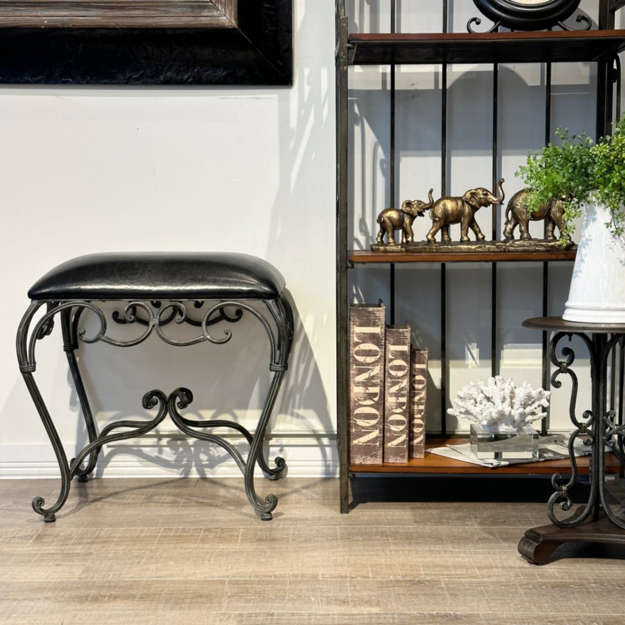 クラシカルスツール アイアン×ブラウン合皮