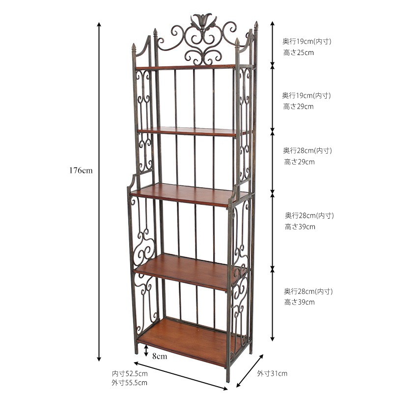 「アイアンシェルフ」 「アンティーク調シェルフ」 「5段シェルフ」 「クラシカル家具」 「ディスプレイ棚」 「ショップ什器」 「インテリア家具」 「店舗用シェルフ」