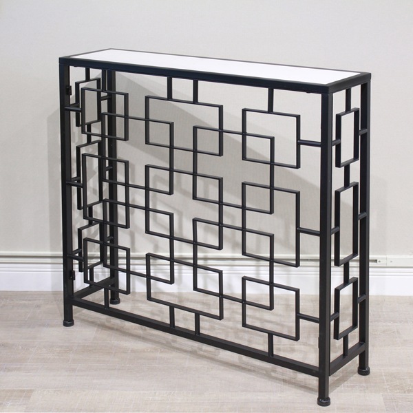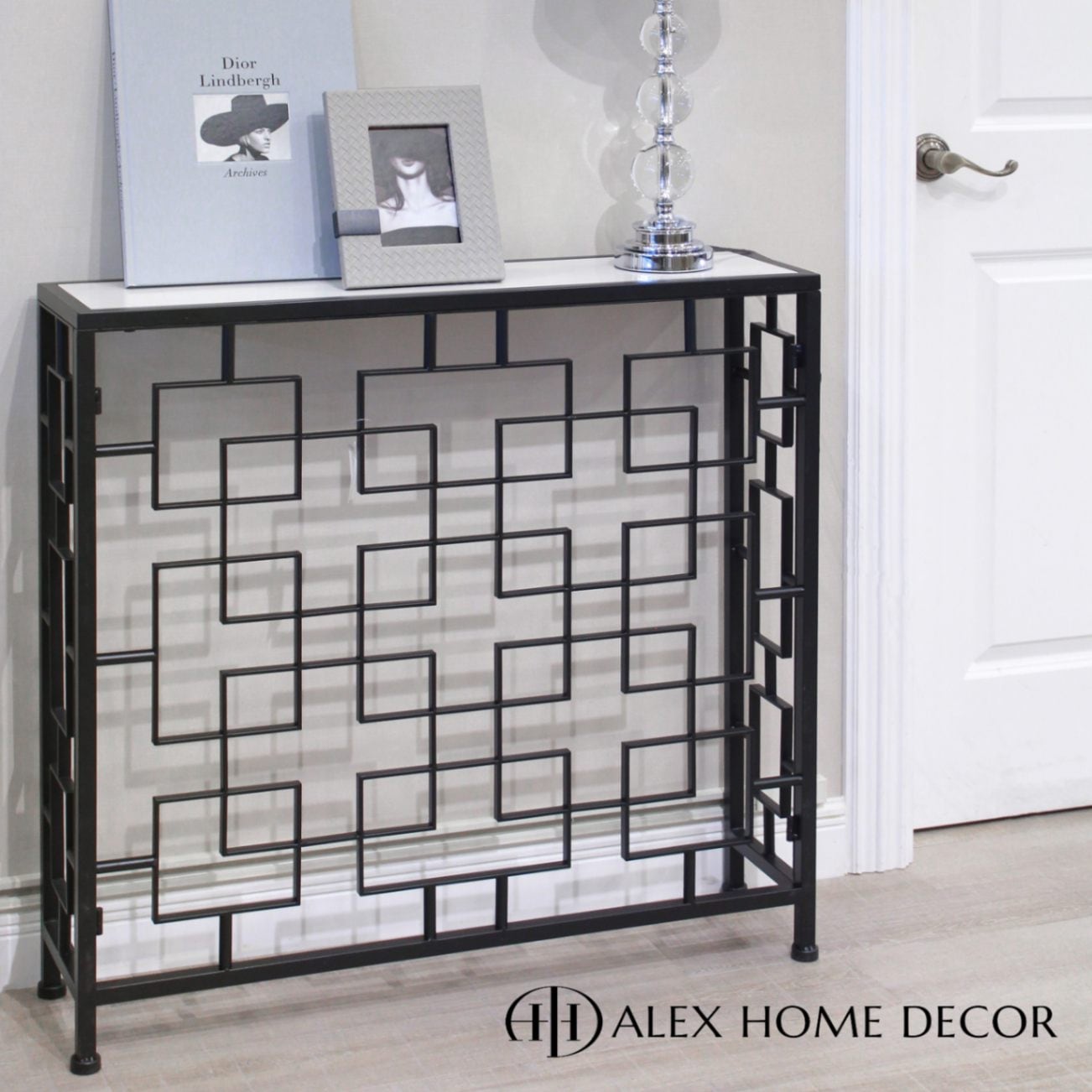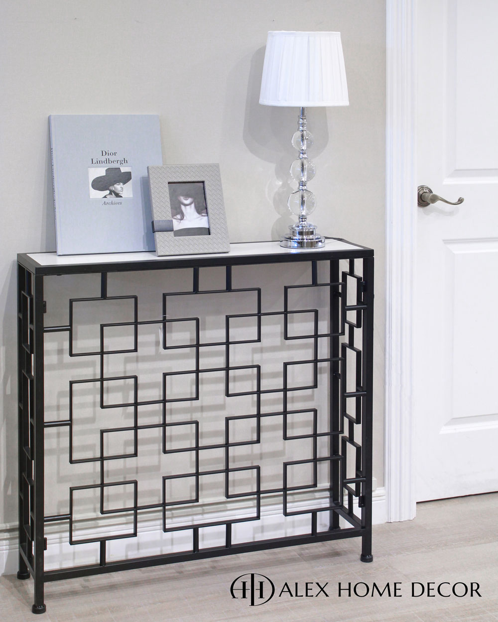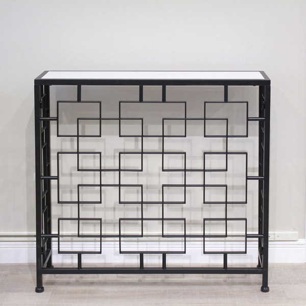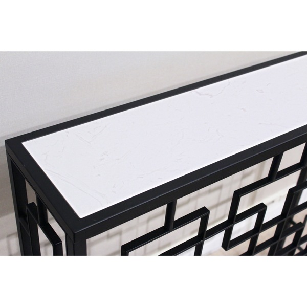 モダンなアイアンのデザインと大理石の組合せが重厚感のあるコンソールテーブル。