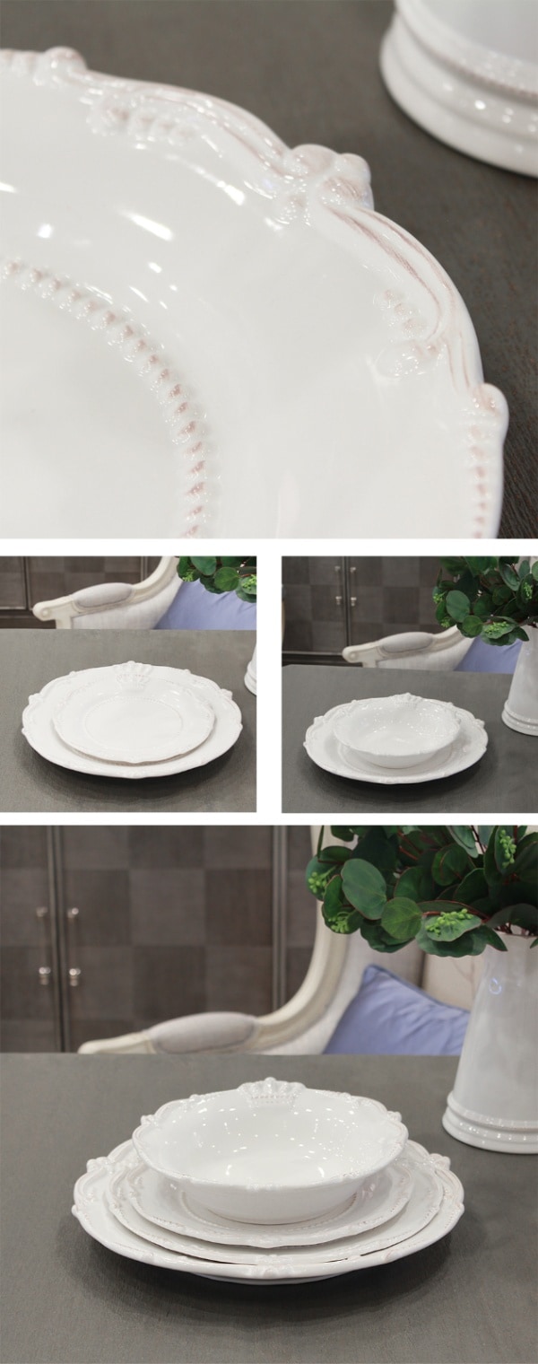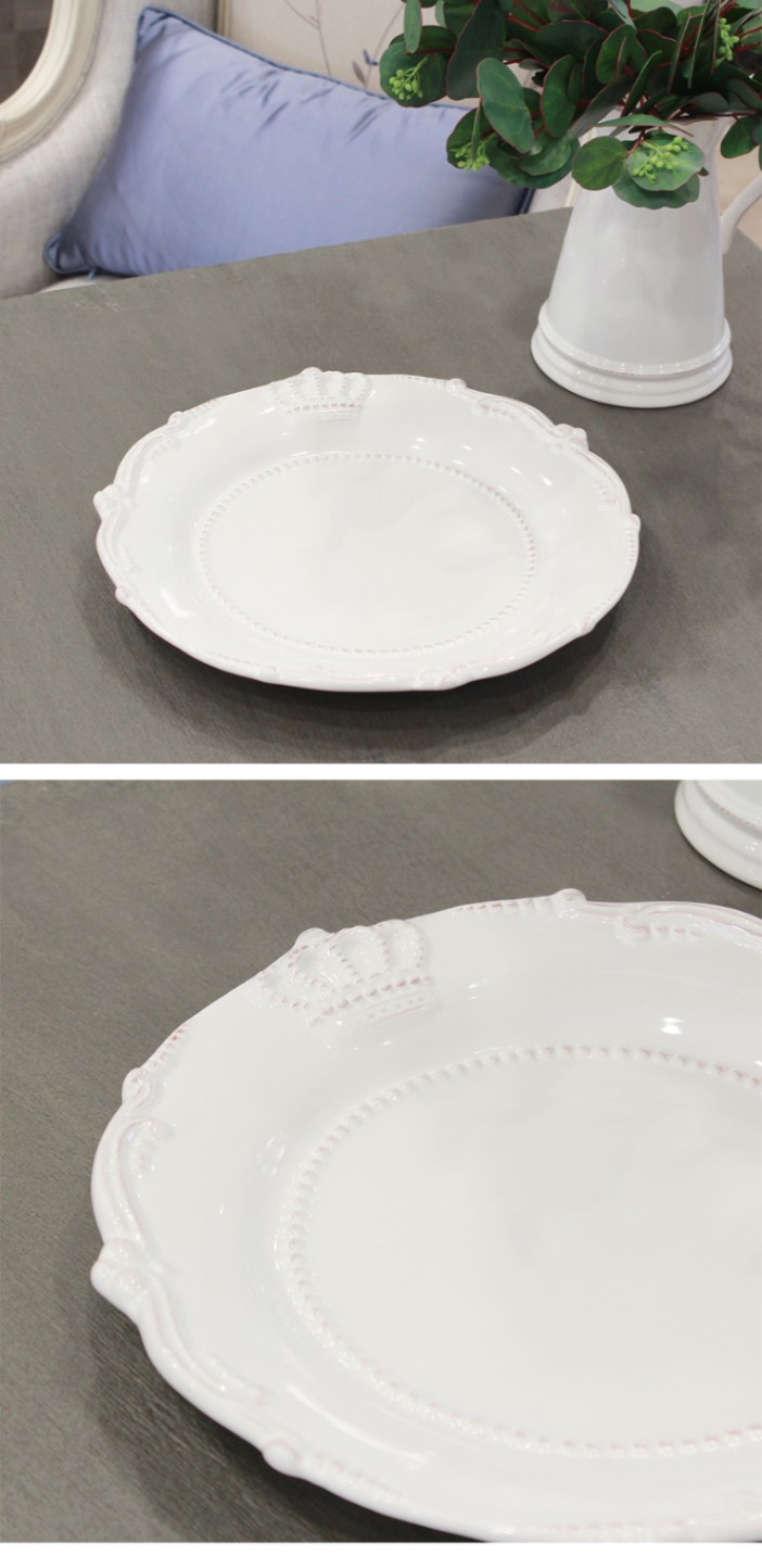 シャビーシックな仕上げのホワイトに王冠のモチーフが素敵なプレート2枚セット。