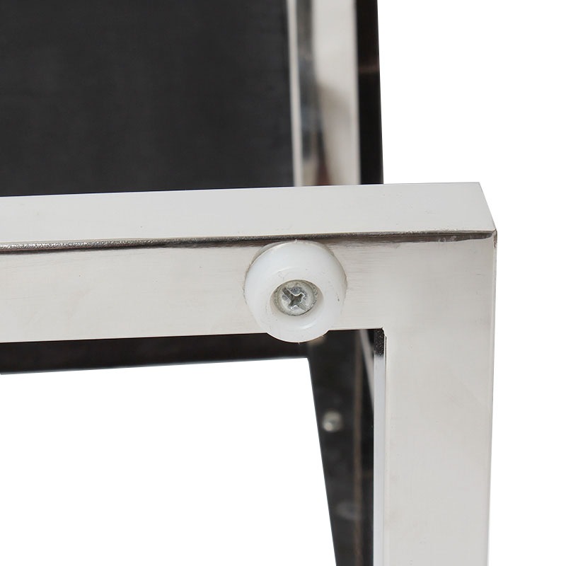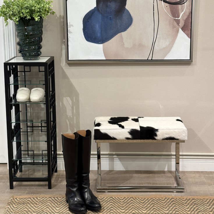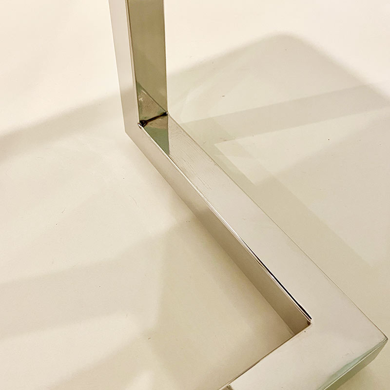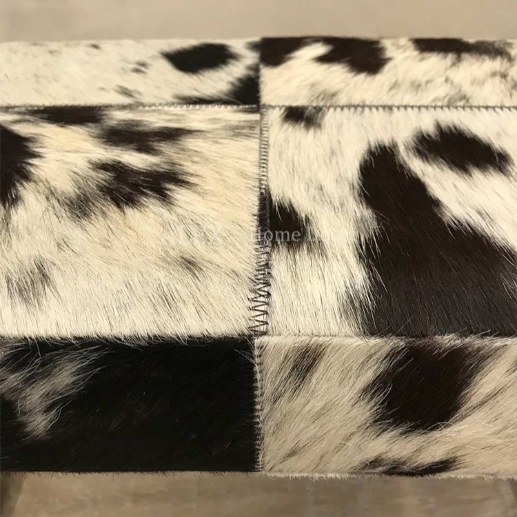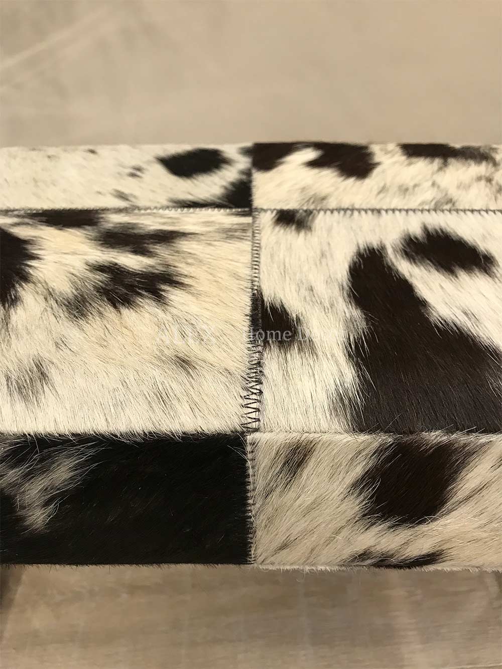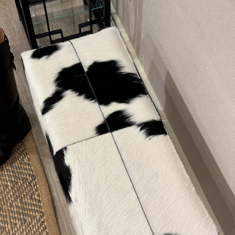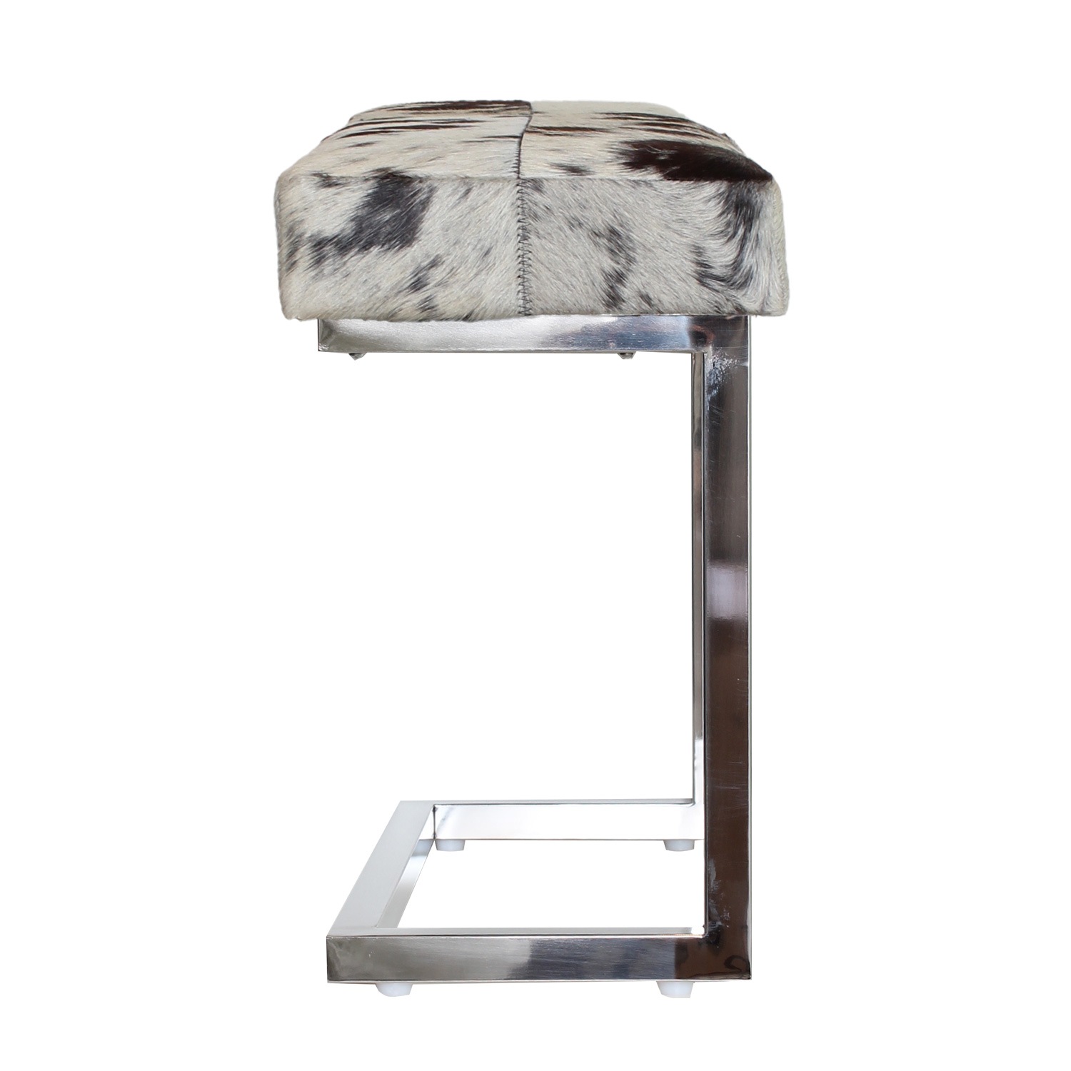 滑らかなリアルファー(牛革)と、シャープなシルバーメッキのスチール脚が、空間に上質でスタイリッシュな印象を与えます。