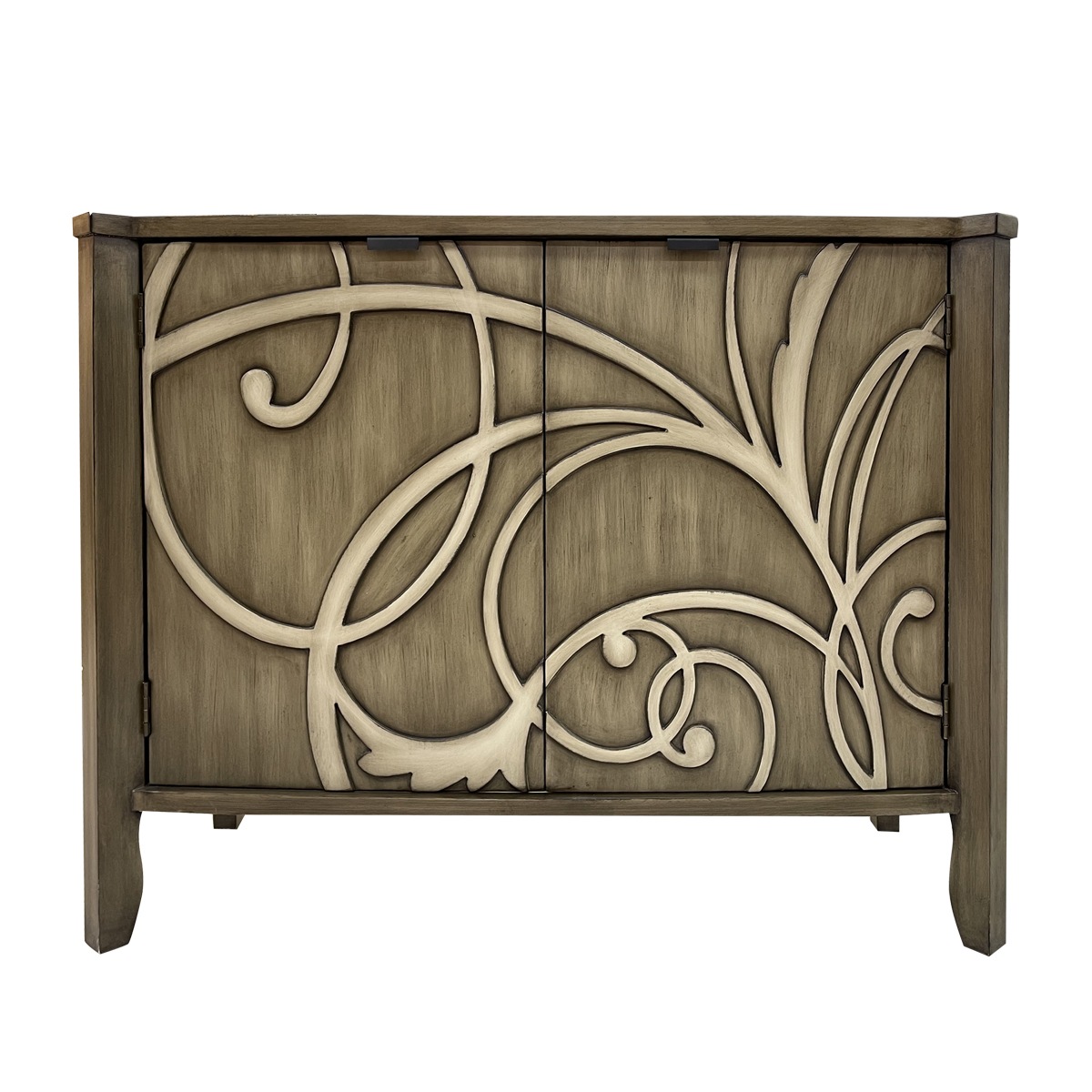 木を貼り合わせたツタ模様の扉がモダンで洗練された空間を演出します。