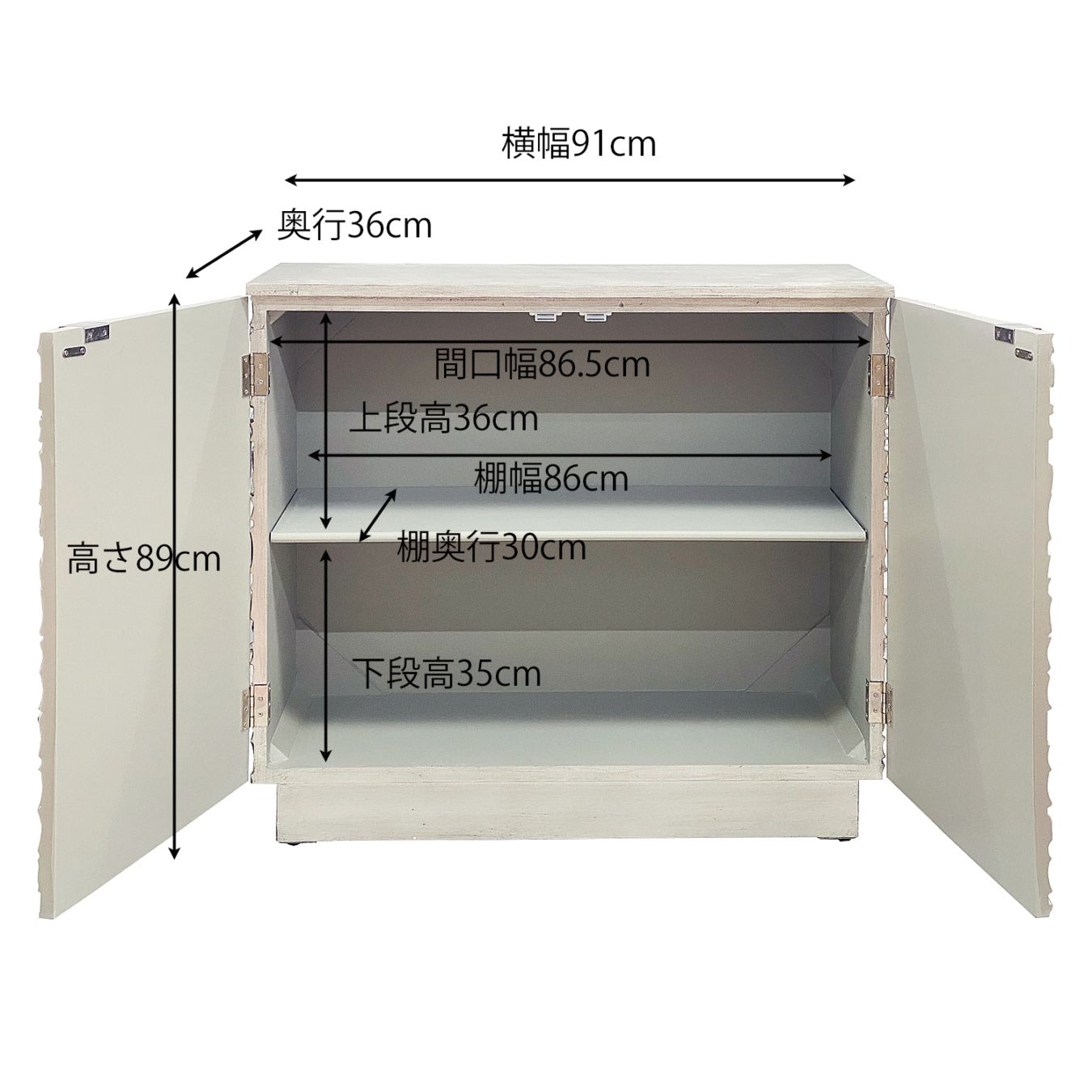 内寸 横幅86cm × 奥行33cm(棚奥行31cm)× 高さ71cm(棚内側73.5cm)