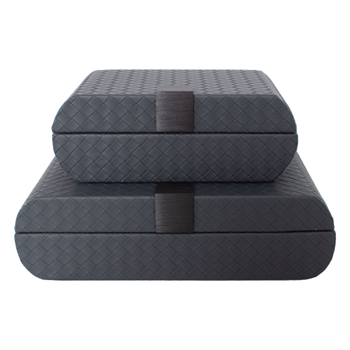 編み合わせられたような型押しがモダンで高級感のあるデザイン。