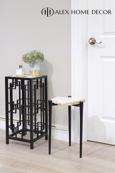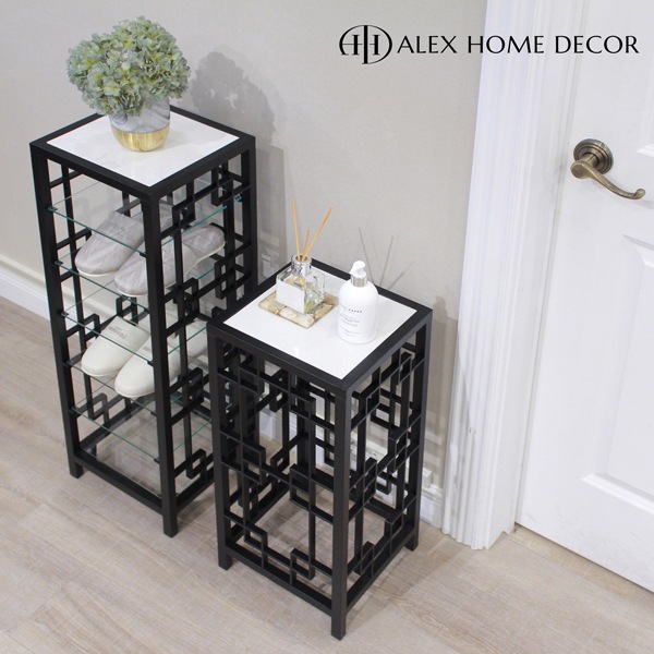 モダンなアイアンデザインと大理石の組み合わせが魅力的なフラワースタンド。