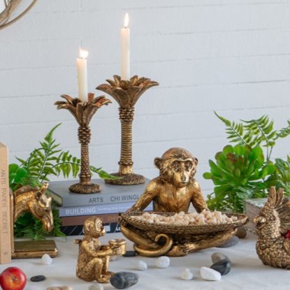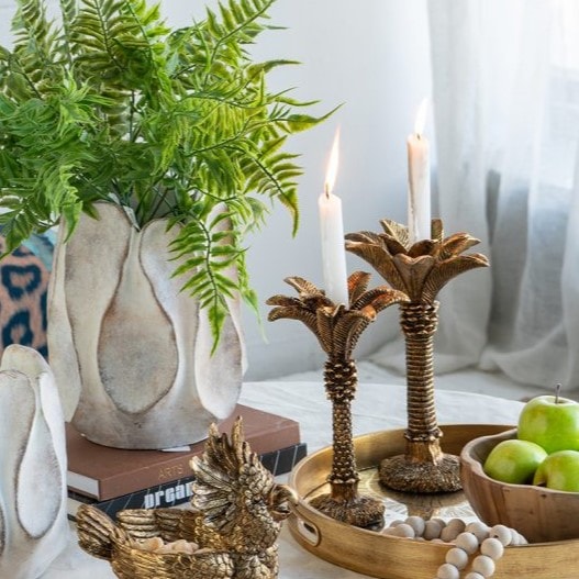 ゴールドキャンドルスタンド パームリーフ調 高さ26cm