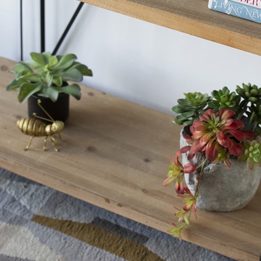 木×ブラックフレームのインダストリアルなブックシェルフ。