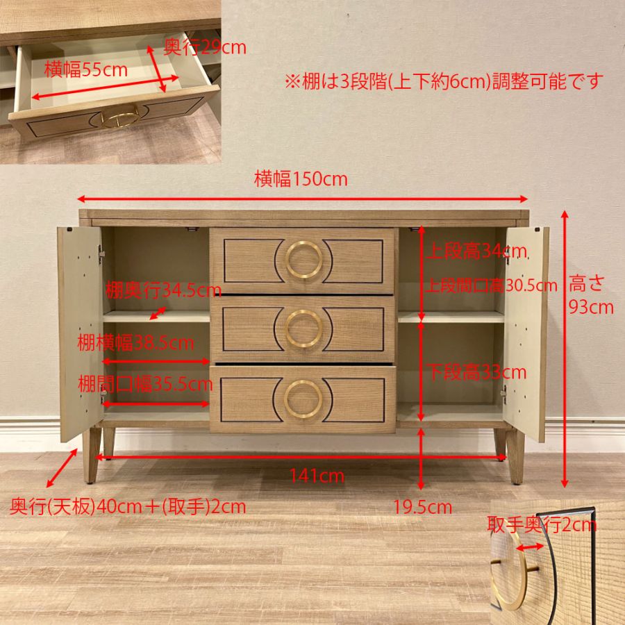 モダンラグジュアリーキャビネット ベージュ 幅150cm