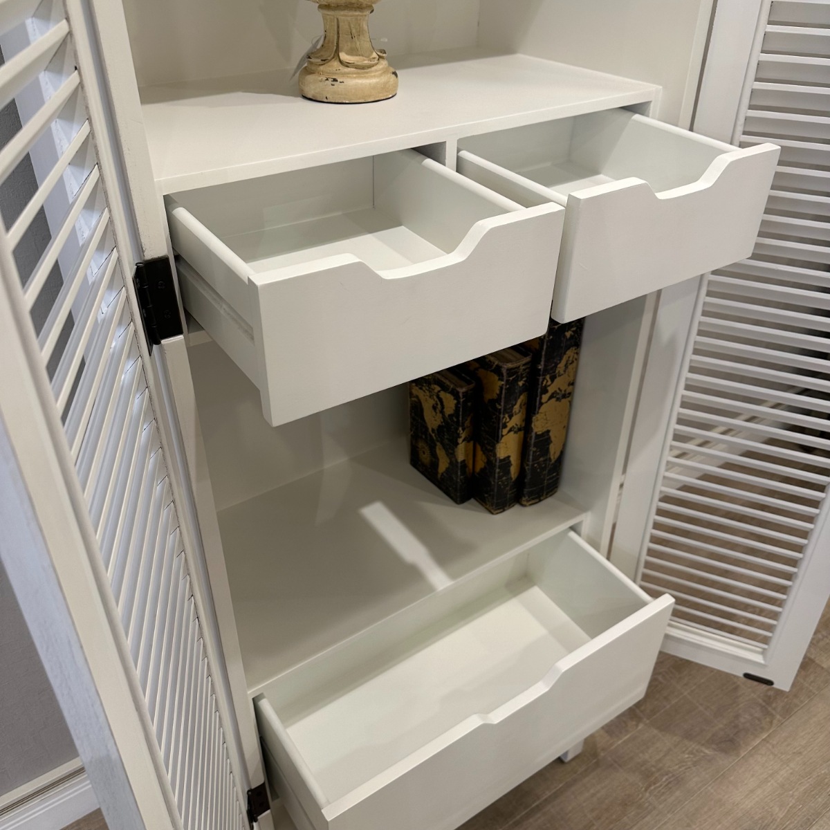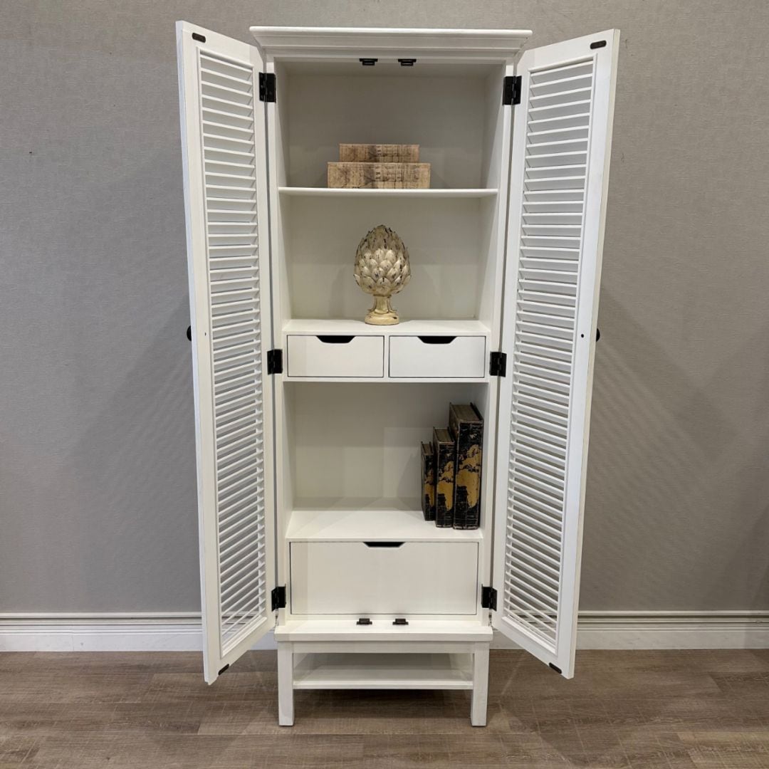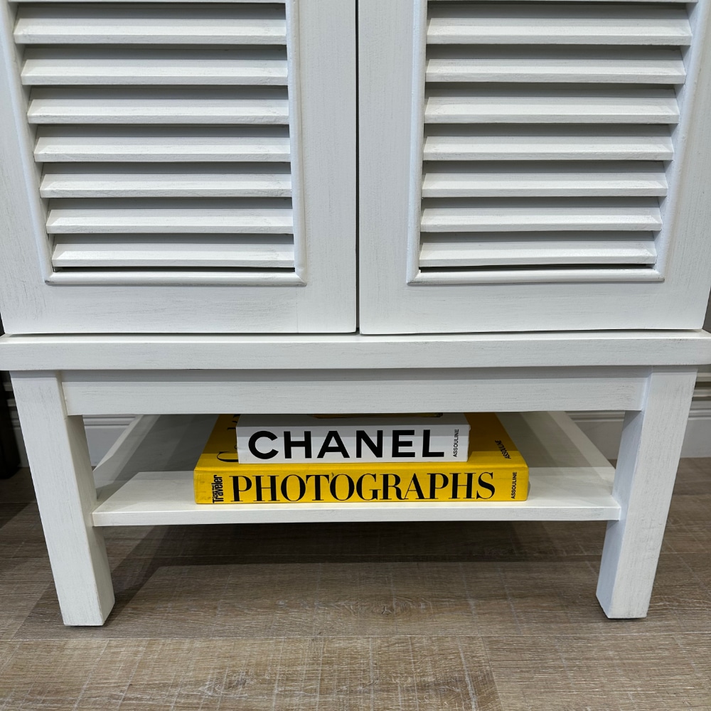 上品なホワイトカラーとルーバー扉が調和し、落ち着いたクラシックインテリアにぴったりの一台です。