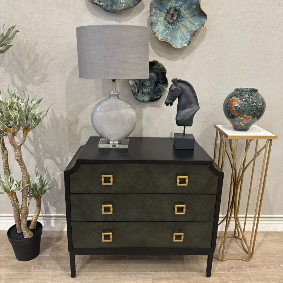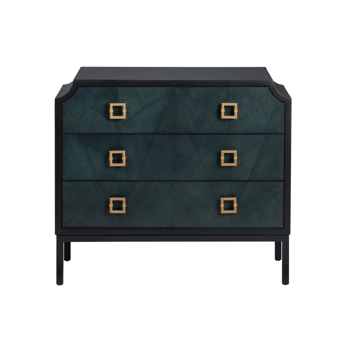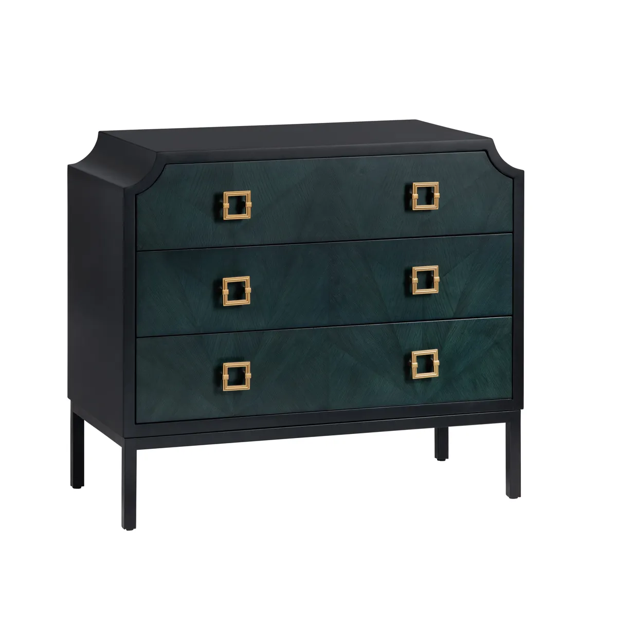 エメラルドグリーン × ゴールドハンドルの3段チェスト
