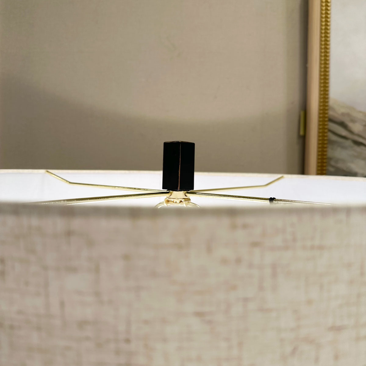 上部にはアイボリートーンのファブリックシェードを組み合わせ、優しくあたたかな光が空間を包み込みます。