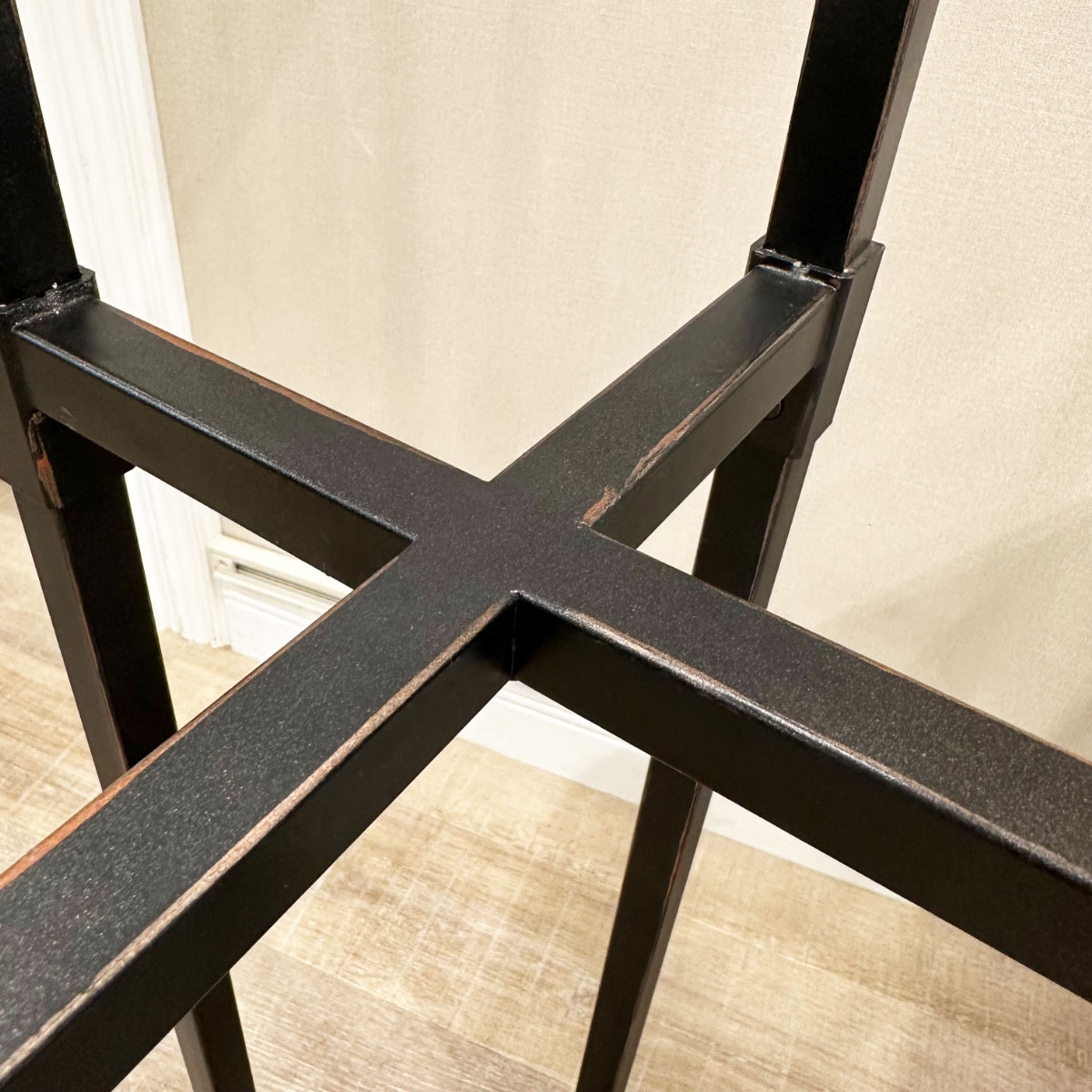 クロス補強された脚部はデザイン性と安定感を兼ね備え、見た目にも強さと品格を感じさせます。