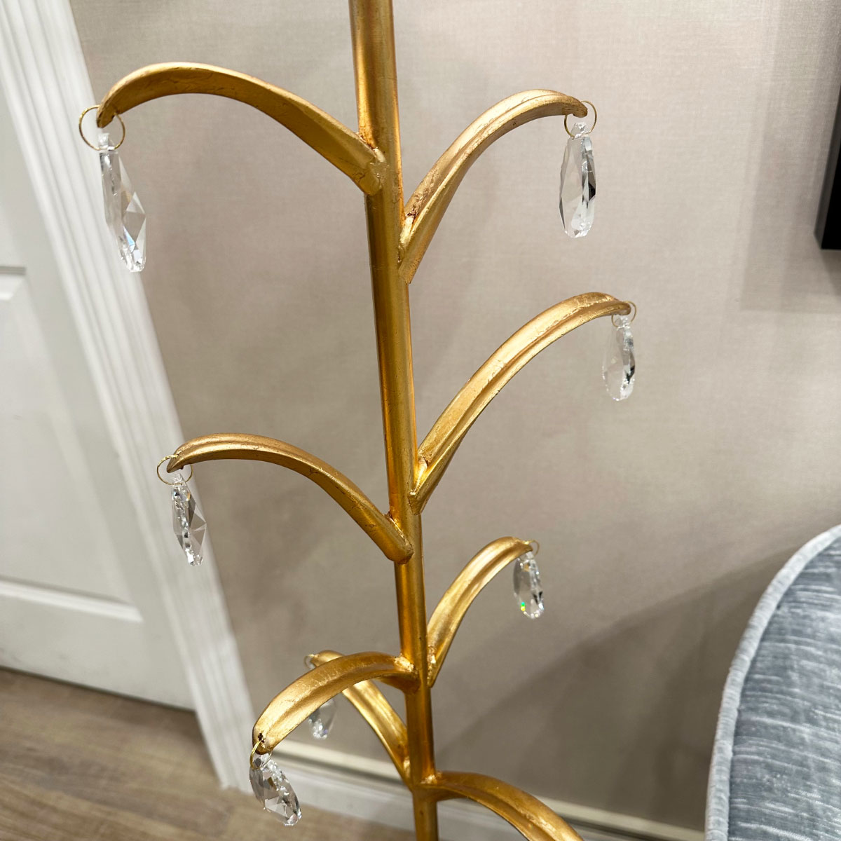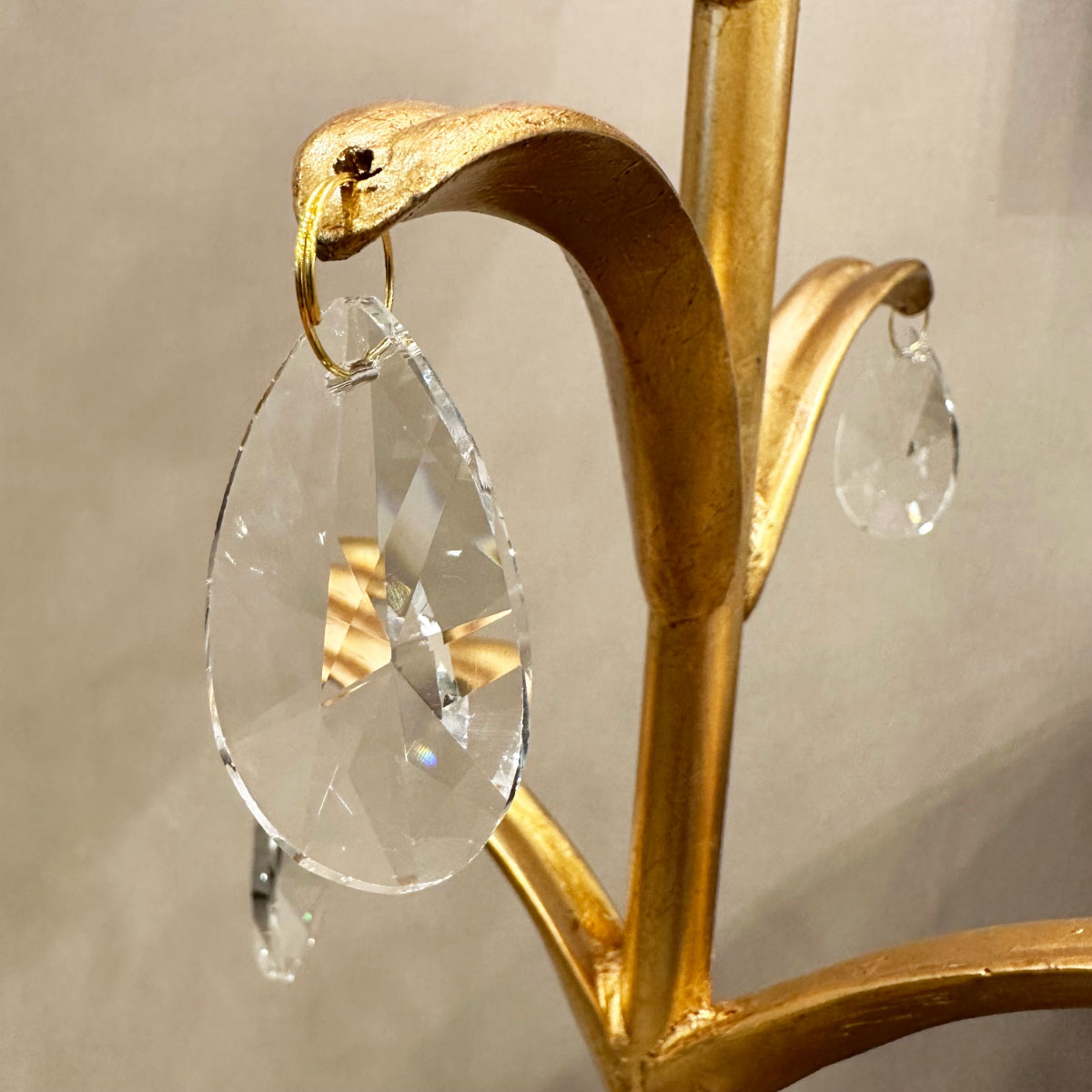 植物を思わせる曲線デザインと、揺れるクリスタルオーナメントが華やかさを演出。