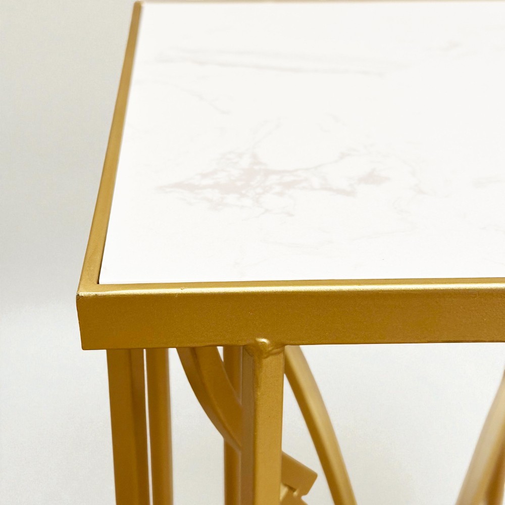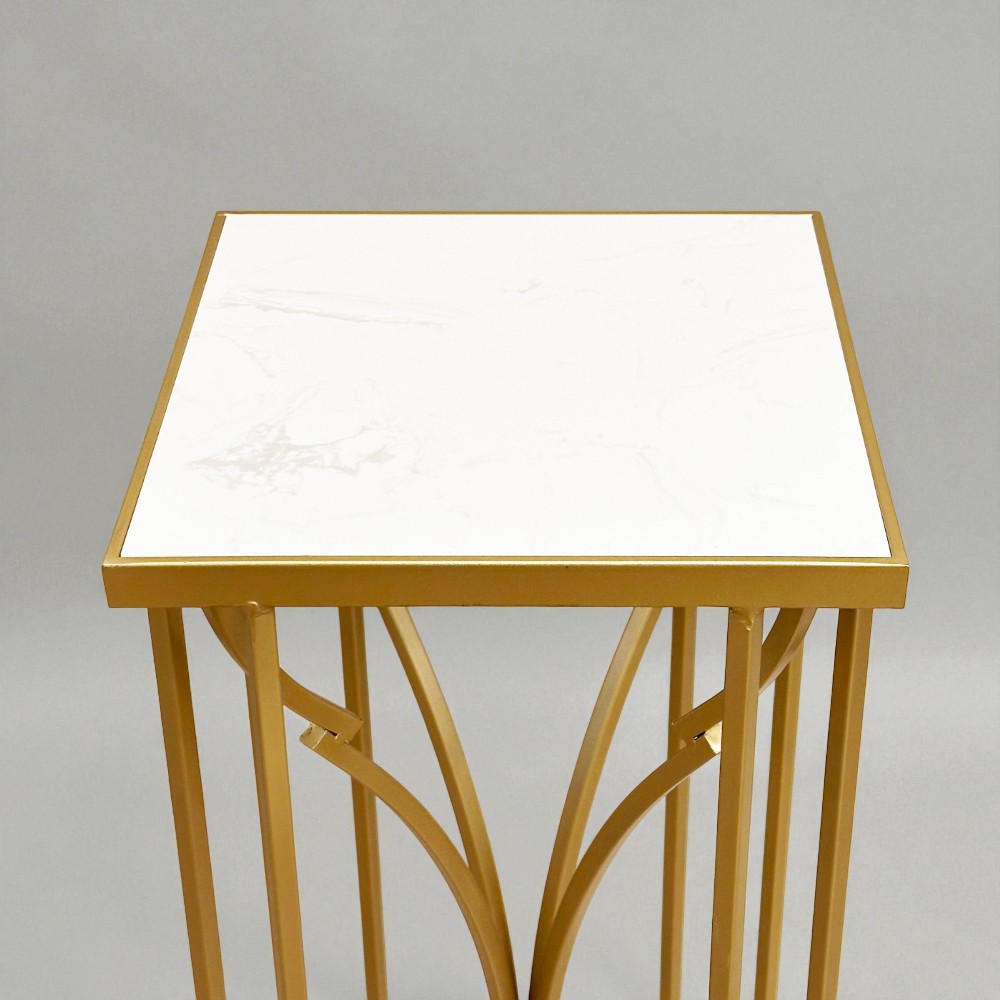 洗練されたゴールドフレームに、マーブル調の天板を合わせたエレガントなフラワースタンド。